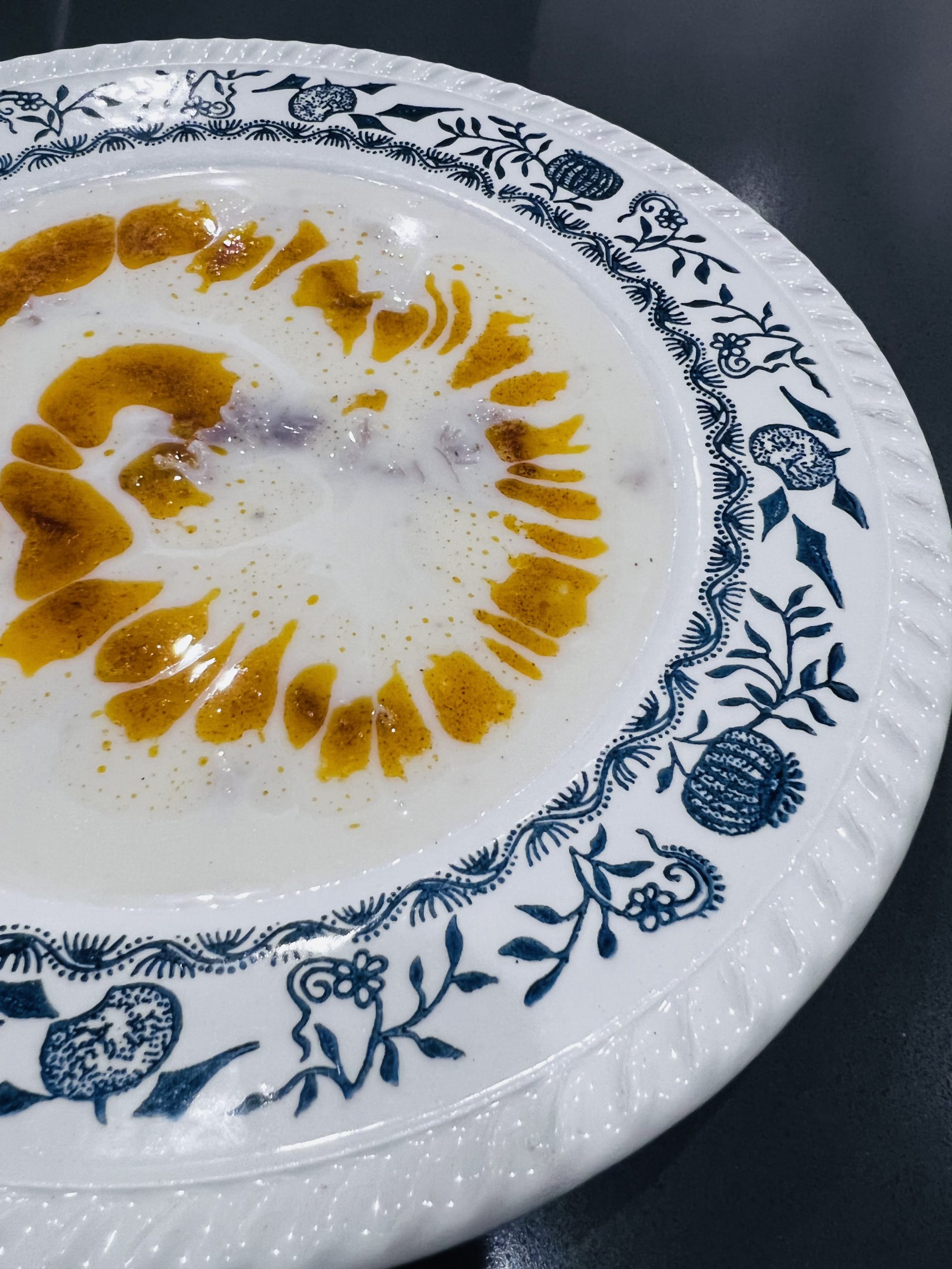 Bir kasede yoğurt ve unu çırpma teli ile pürüzsüz bir kıvam alana dek çırpın. (Normalde bu çorbaya yumurta sarısı da ilave edilir. Ancak ben tercih etmiyorum, karar sizin)