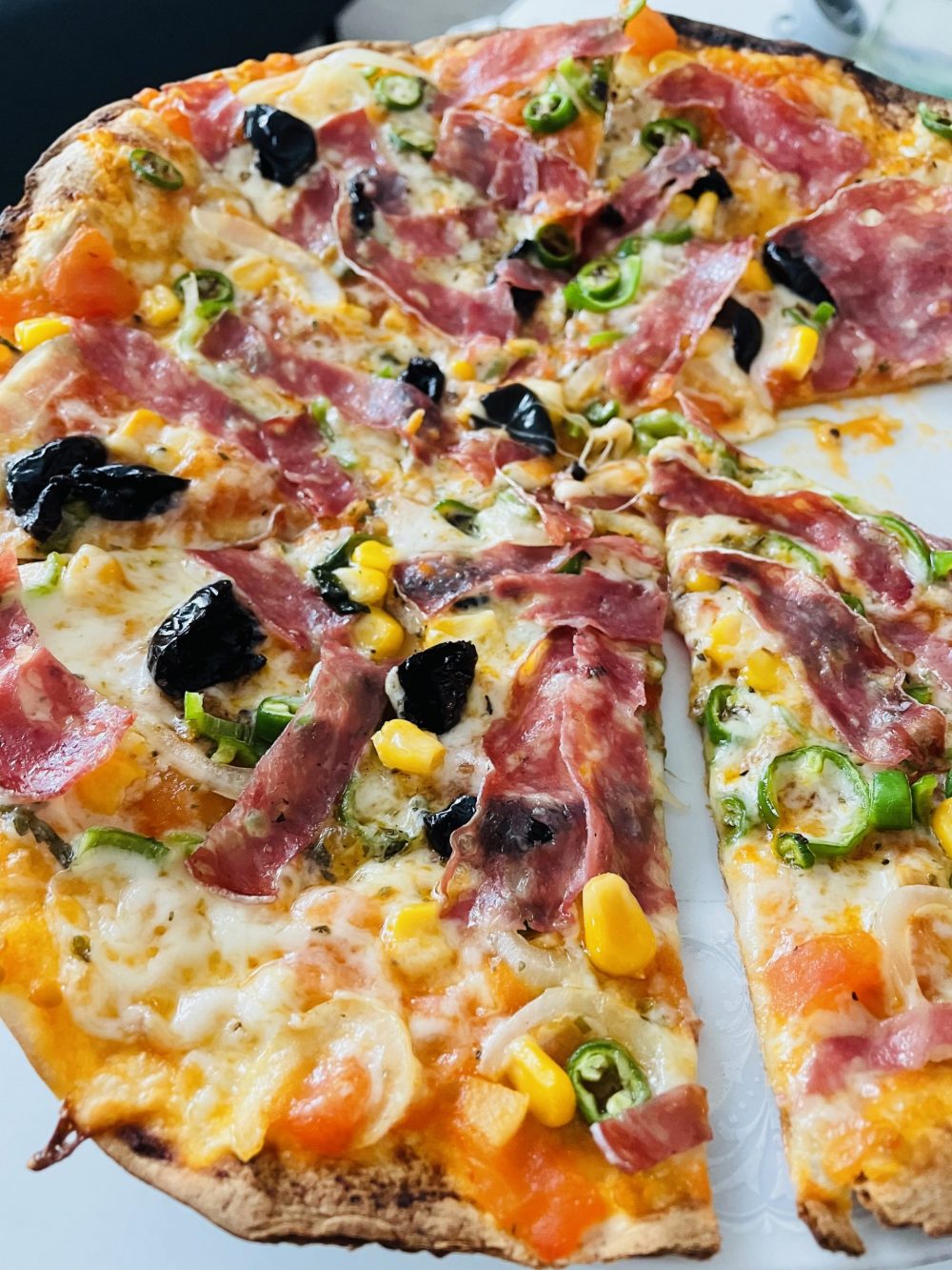 - Pro tip: zeytin ve mısırı pizzanın üstüne koymadan bir peçete yardımıyla ekstra nemini alın ki pizzayı yumuşatmasın.